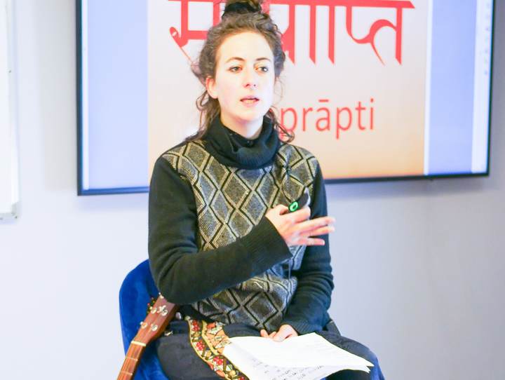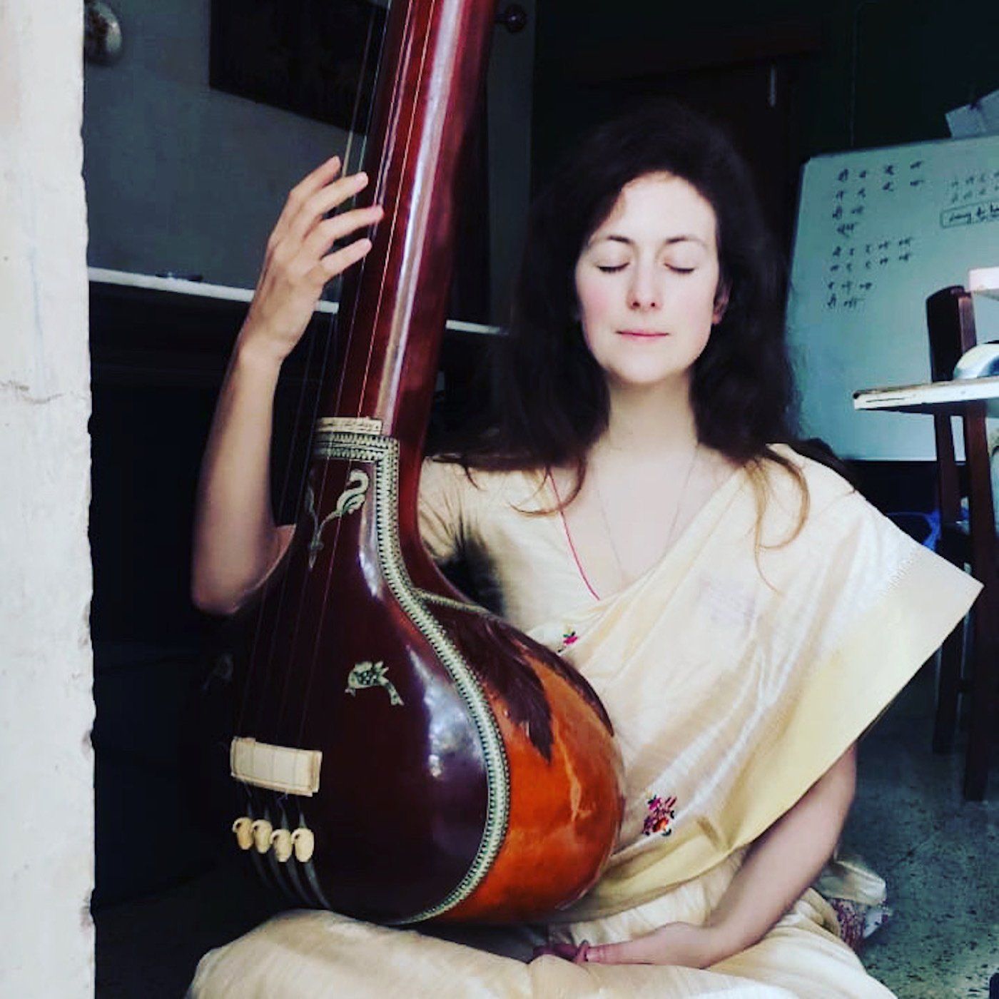 Gaiea learned Sanskrit in London since the age of 4, and has a degree in Sanskrit from Oxford University, where she also had a choral scholarship. She was a stand up comic, wrote musicals, and many songs, and went onto a Masters in Music Theatre and later qualified as a teacher of The Alexander Technique. This was just the first of many drops in the ocean of learning that continues every day. She embarks upon yearly visits to India to study music and Sanskrit, and maintains regular contact with great teachers here in UK and India.